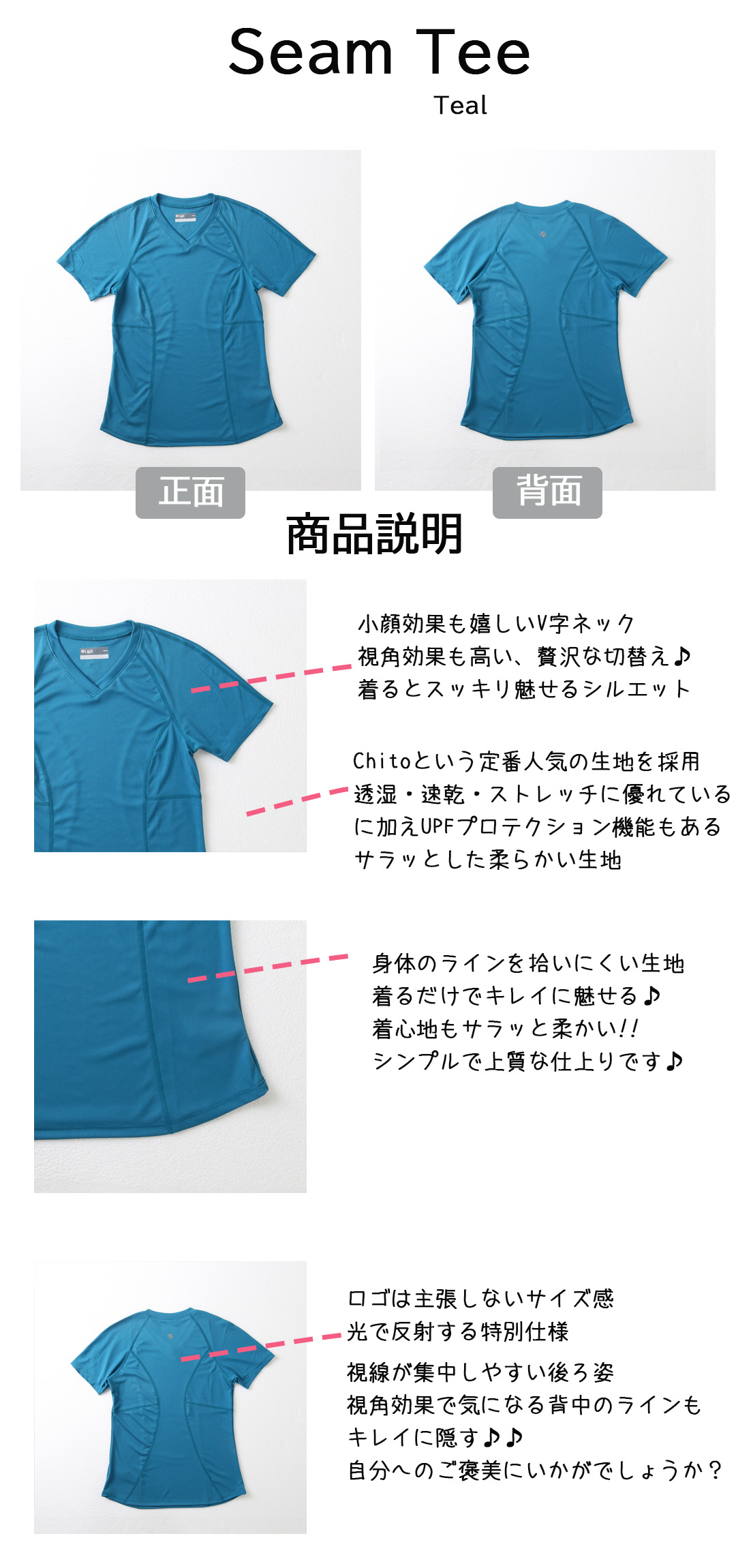 SALE50%OFF返品不可 SeamTeeシームティー|テニスウェア|半袖|Teal