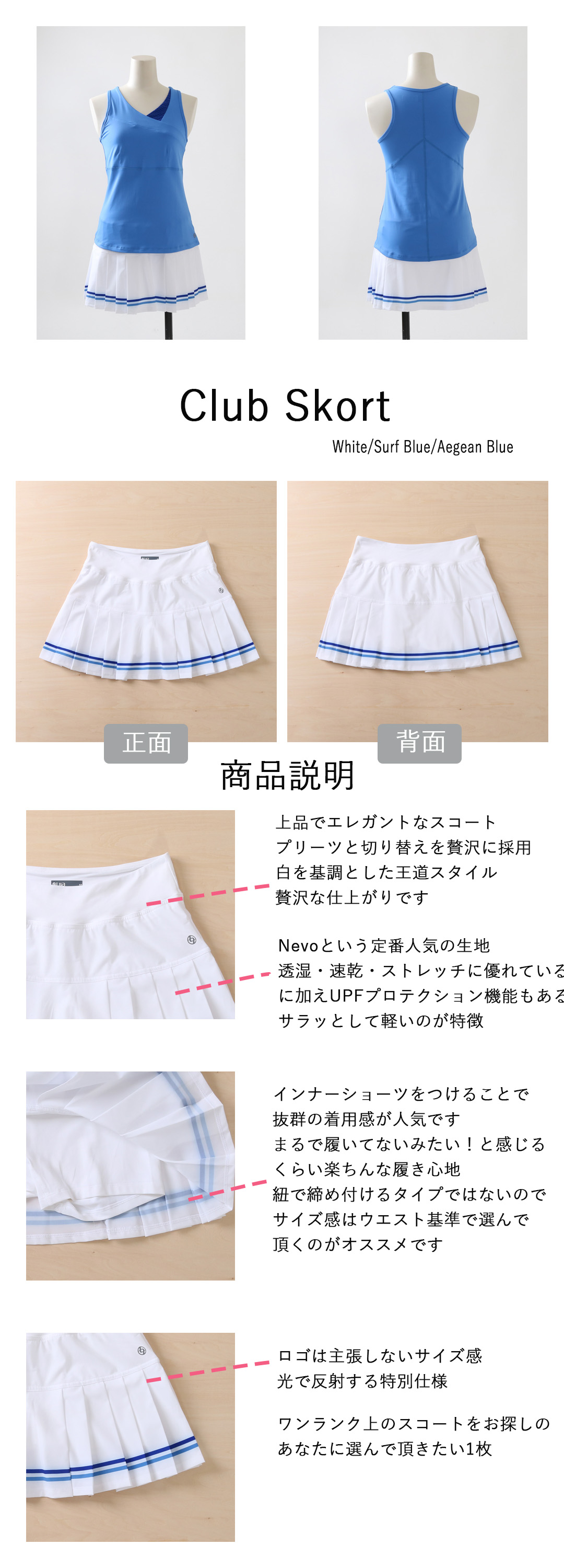 SALE30%OFF返品不可 ClubSkortクラブスコート|テニスウェア|スコート|WhiteSurfBlue