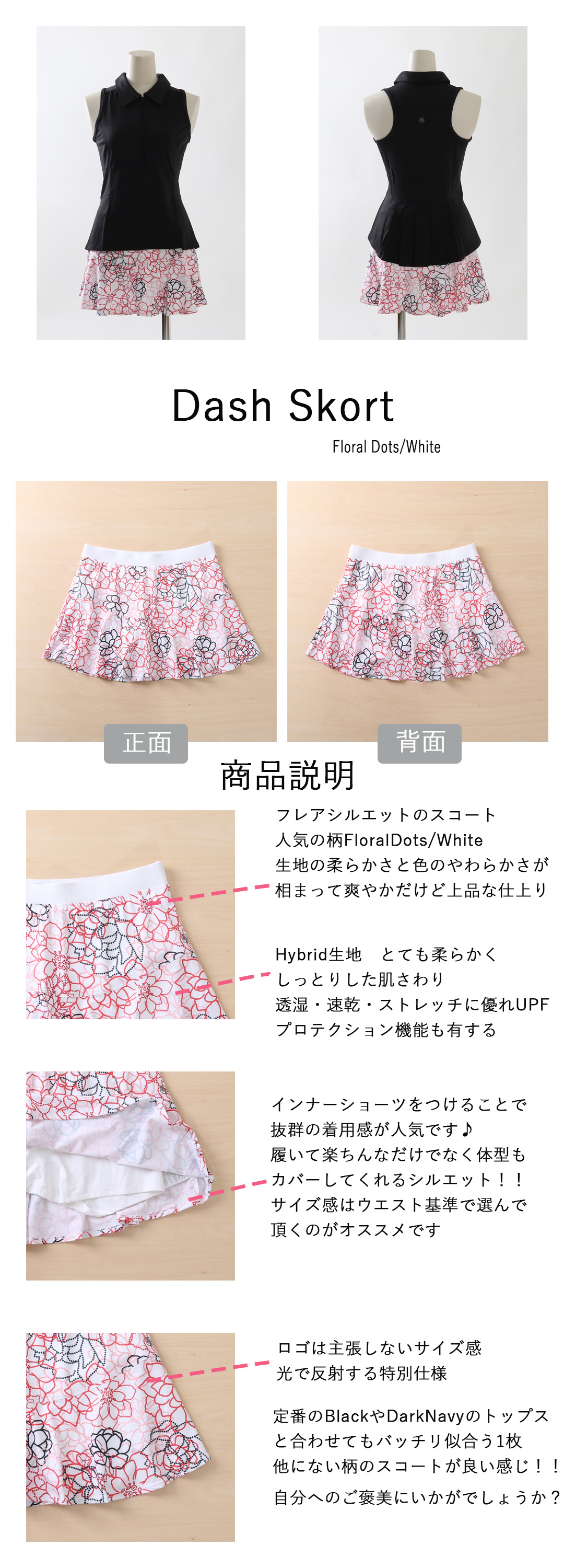 Dash Skortダッシュスコート|テニスウェア|スコート|Floral