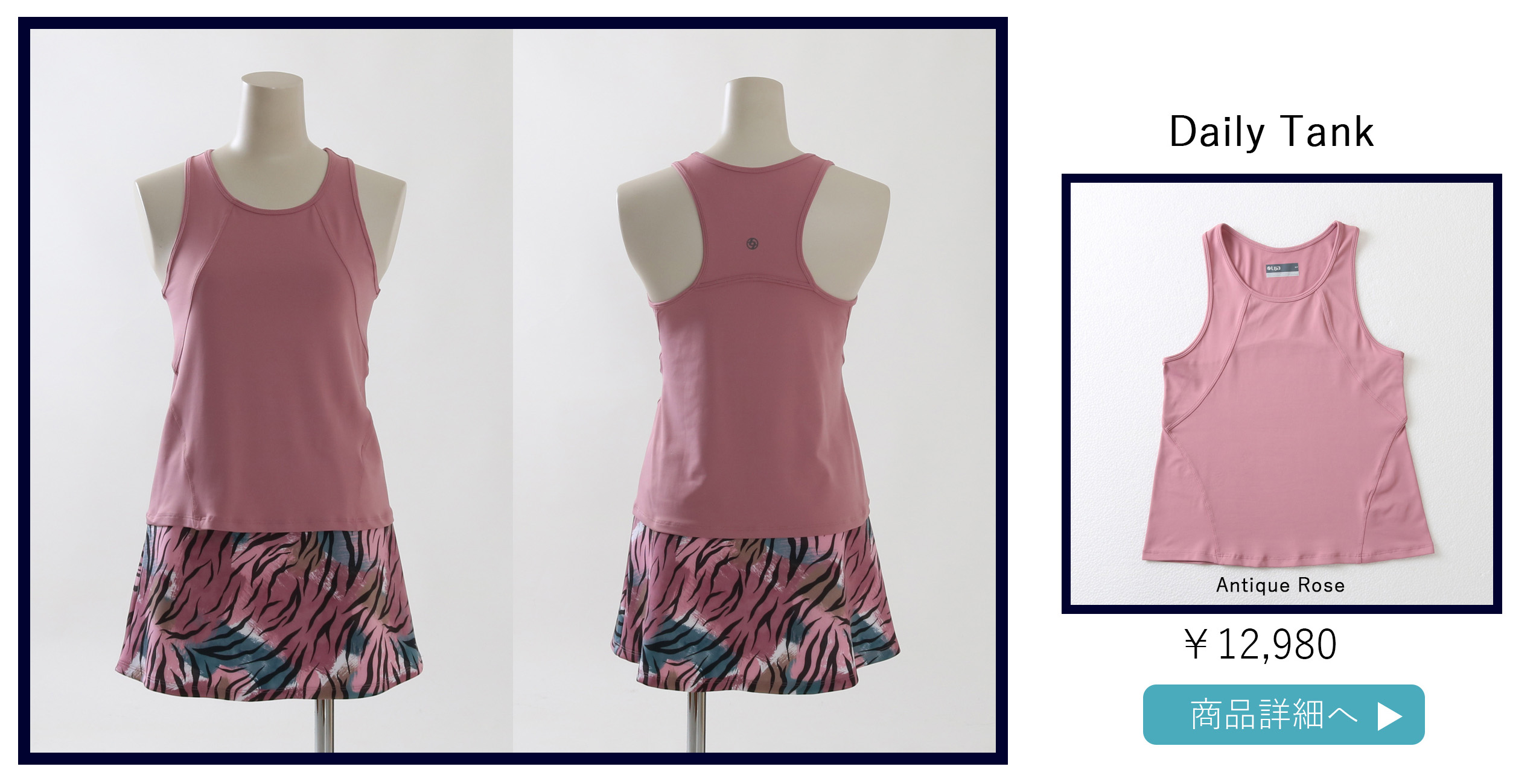 NEW新作|着丈短め|1サイズUPで選ぶ DailyTankデイリータンク|テニスウェア|ノースリーブ|Antique Rose NEW お誕生日クーポン 送料無料 定価 ¥ 12,980 税込 お気に入りに登録する