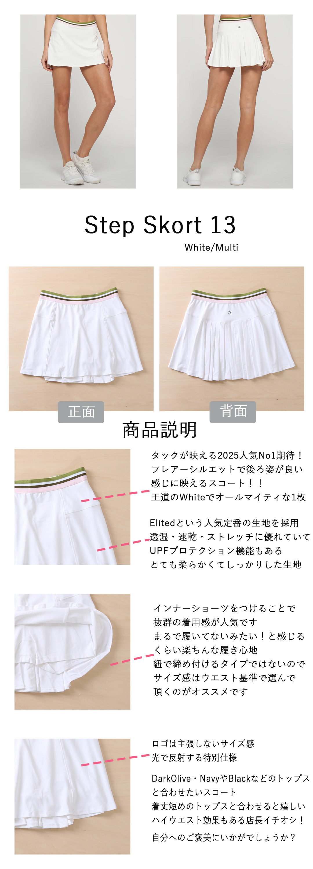 StepSkortステップスコートスコート|テニスウェア|スコート|WhiteMulti