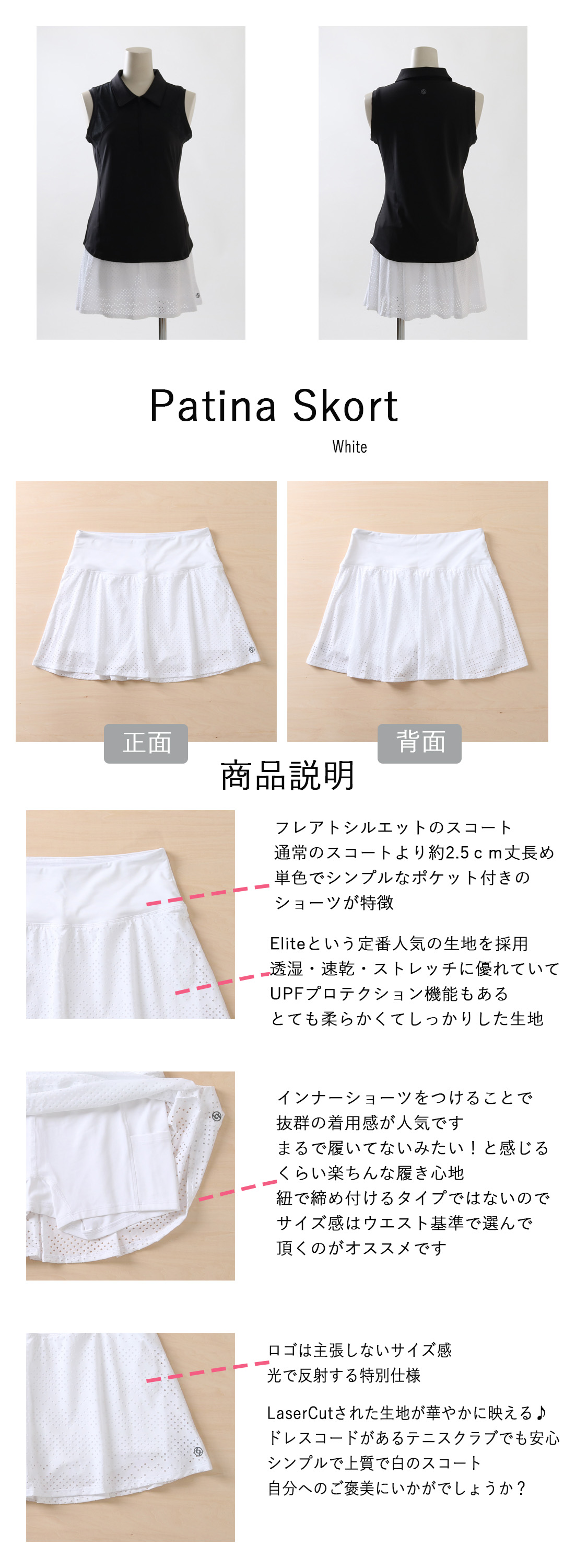 PatinaSkortパティーナスコート|テニスウェア|スコート|LaserCut|White
