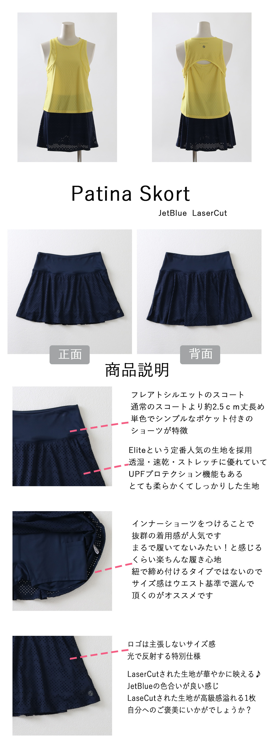 PatinaSkortパティーナスコート|テニスウェア|スコート|LaserCut|JetBlue|2025年5月入荷