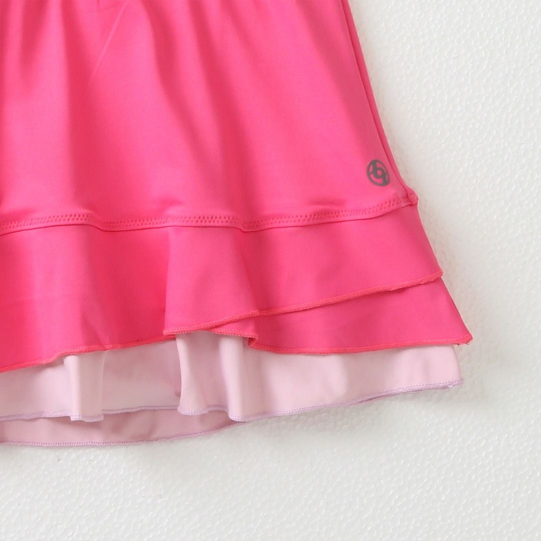 スコートの裾に独自のデザインを施すことで、視角効果が働き脚を長くキレイに魅せることができます