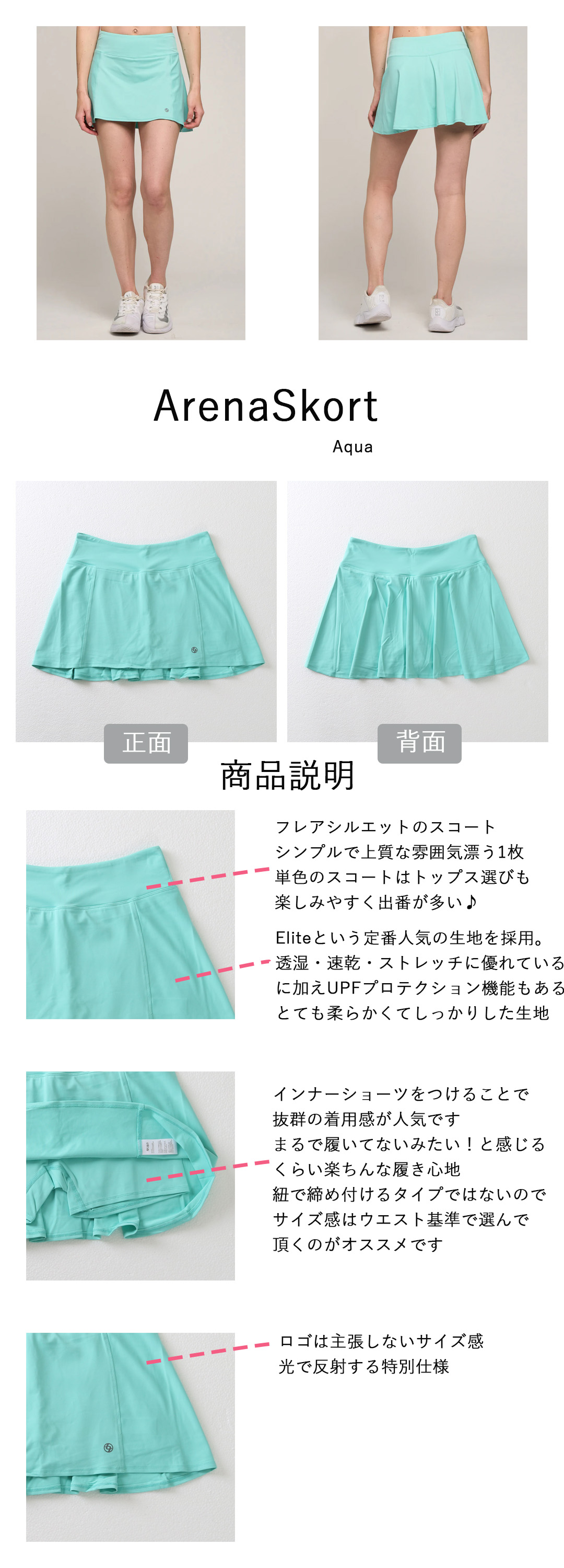 ArenaSkortアリーナスコート|テニスウェア|スコート|Aqua