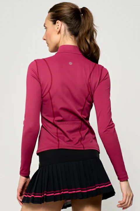 黒のレギンスに映える赤ピンク色のテニススコートはいかがでしょうか?