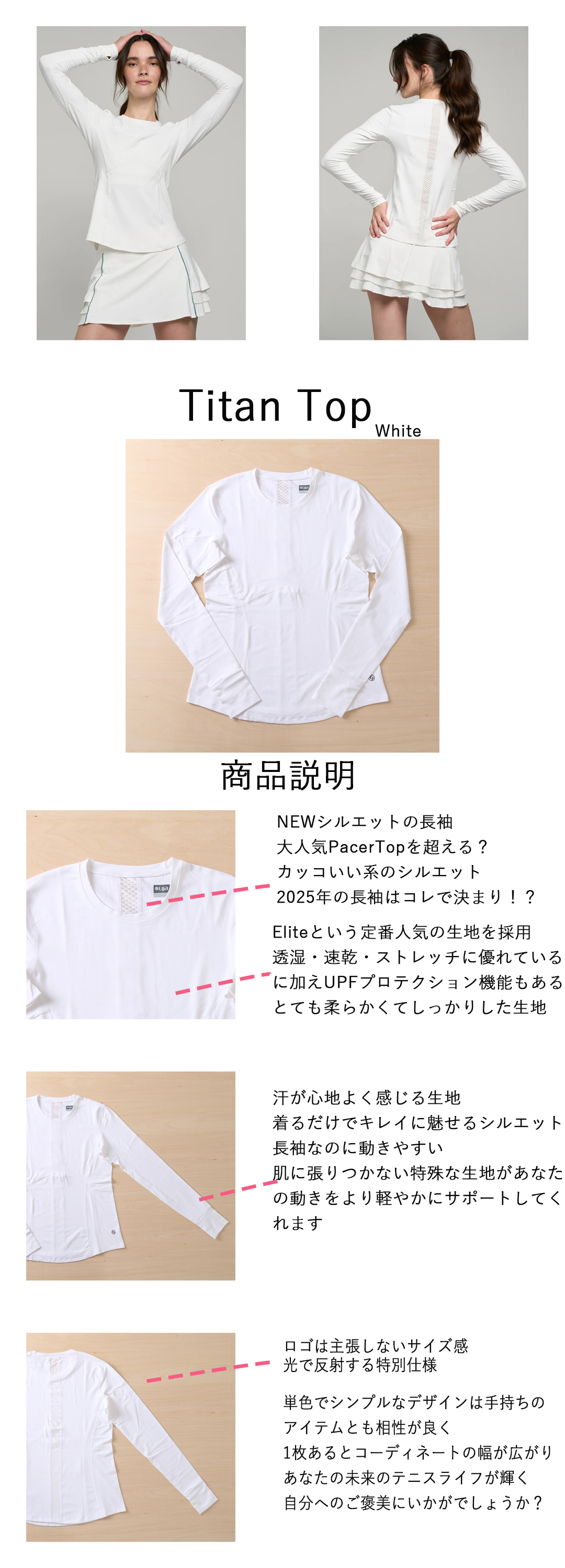 TitanTopタイタントップ|テニスウェア|長袖|White|Elite生地