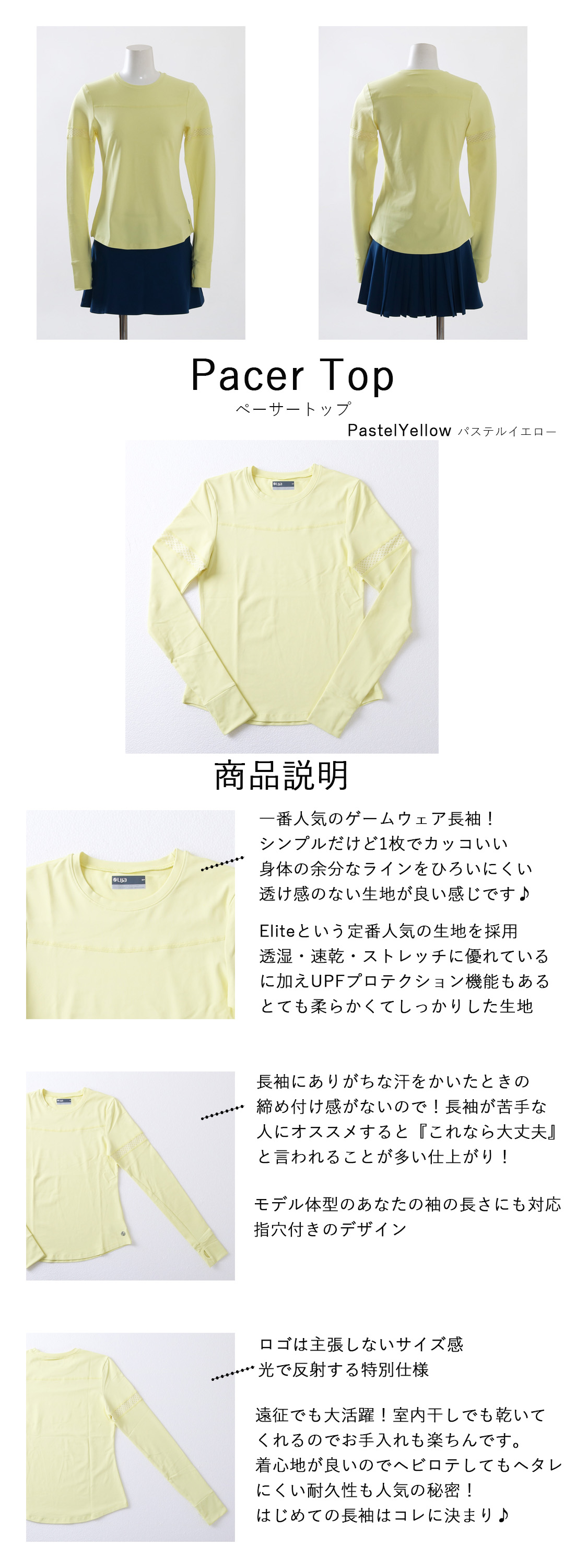 2026年8月末入荷予定 PacerTopペーサートップ|テニスウェア長袖|PastelYellowパステルイエロー