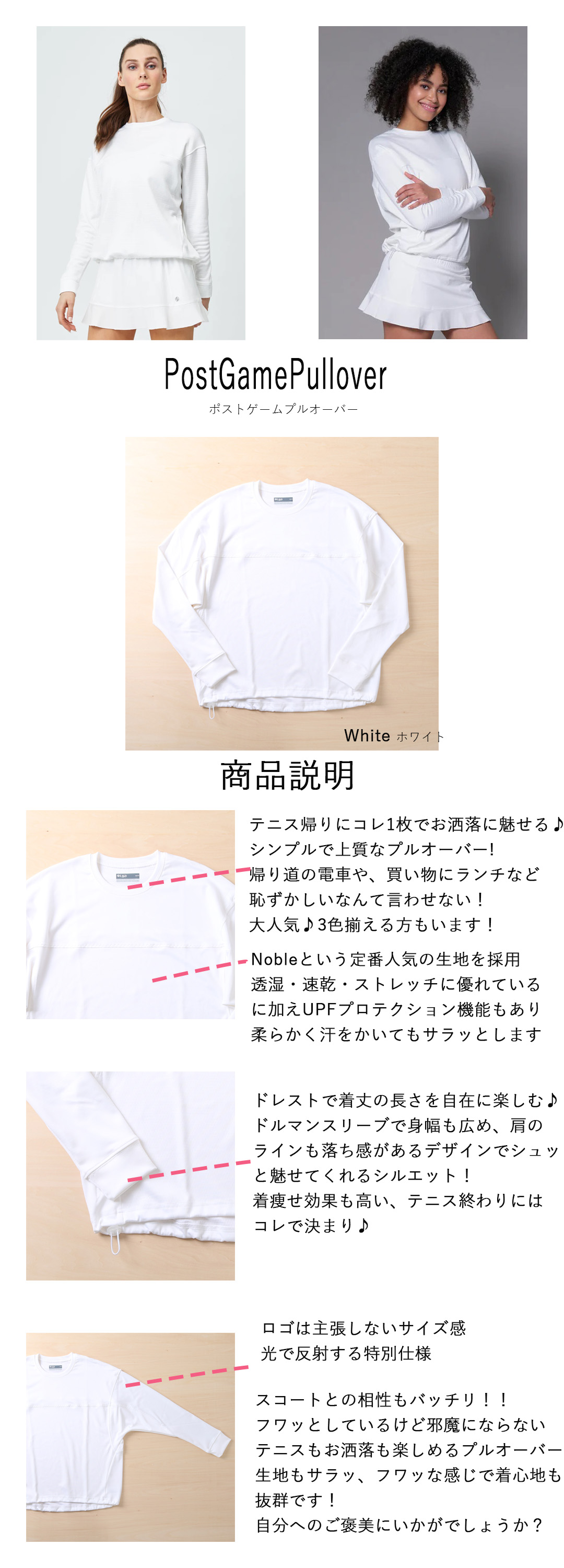 NEW新作|定番|一番人気 PostGamePulloverポストゲームプルオーバー|テニスウェア|アウター|White