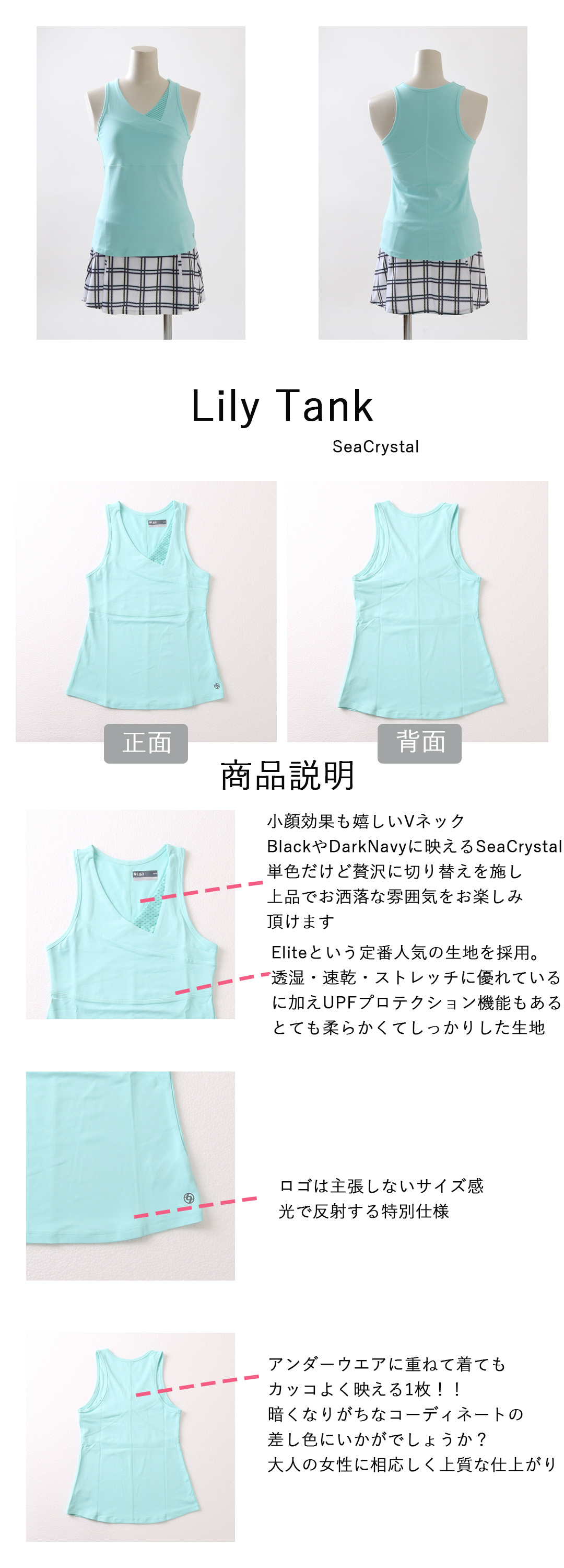 Lily Tankリリータンク|テニスウェア|ノースリーブ|SeaCrystal