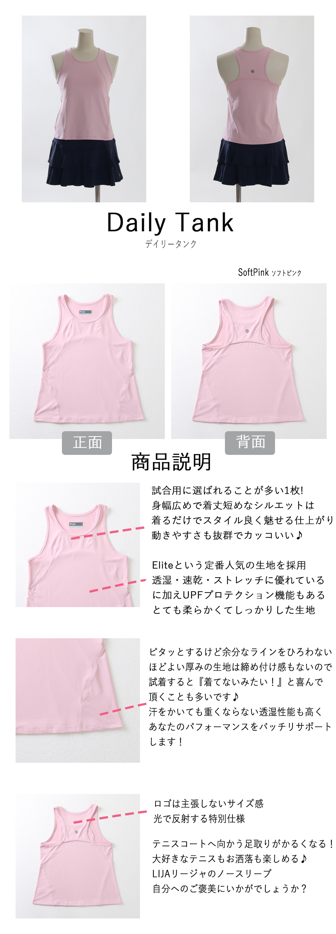 SALE返品不可 DailyTankデイリータンク|テニスウェア|ノースリーブ|SoftPink