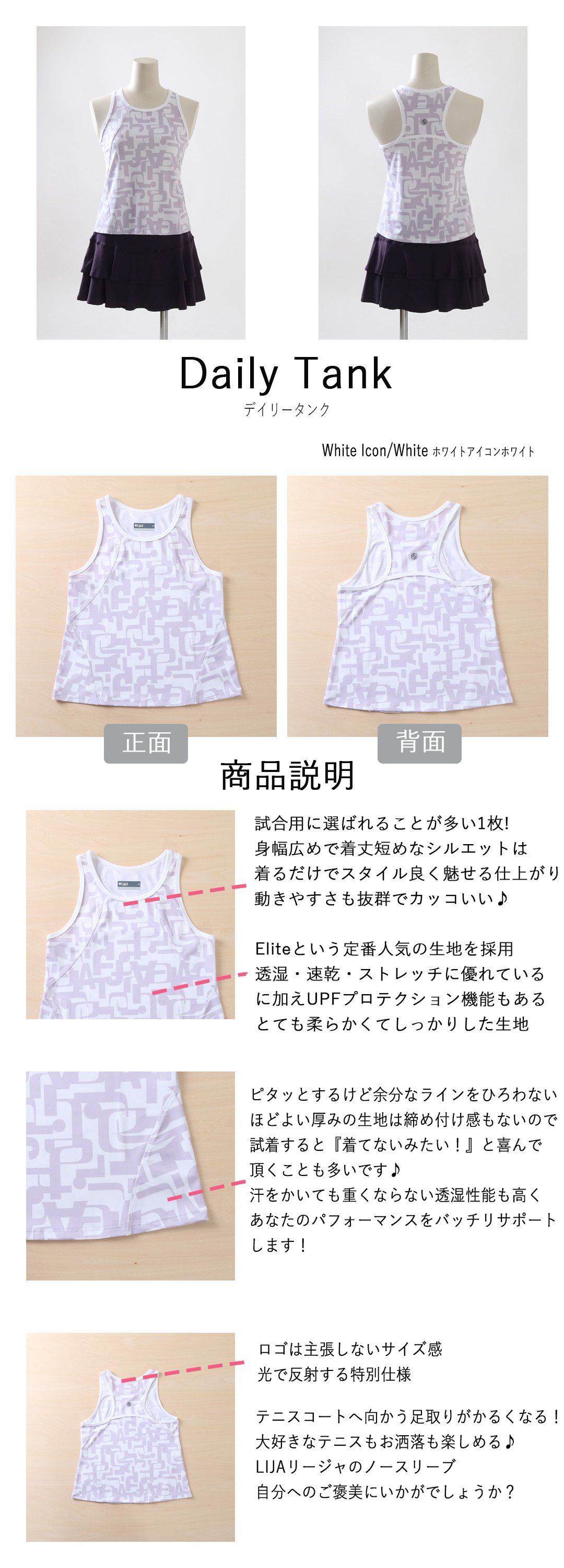 SALE返品不可 DailyTankデイリータンク|テニスウェア|ノースリーブ|WhiteIcon