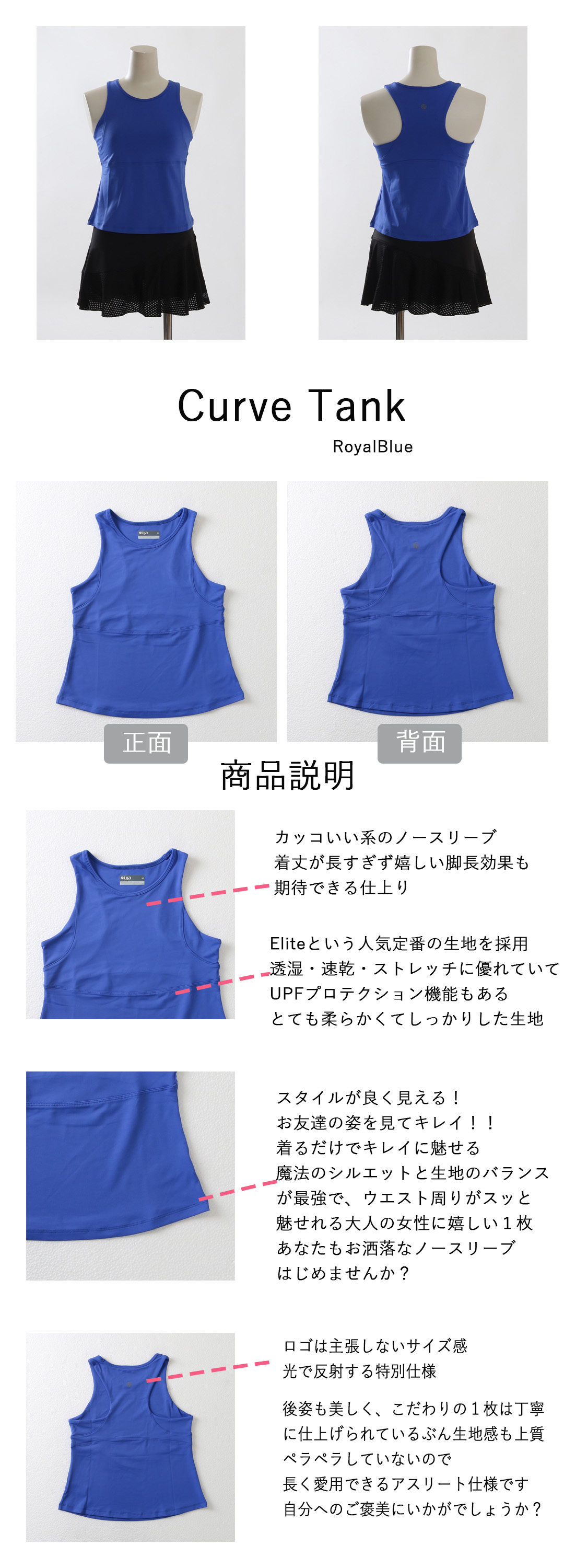 CurveTankカーブタンク|テニスウェア|ノースリーブ|RoyalBlue