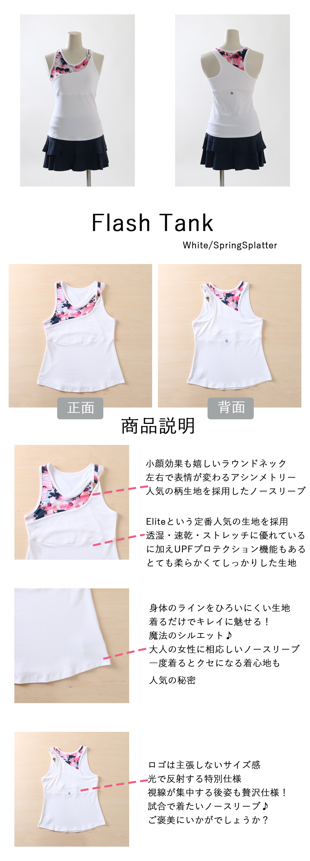 SALE返品不可 FlashTankフラッシュタンク|テニスウェア|ノースリーブ|White