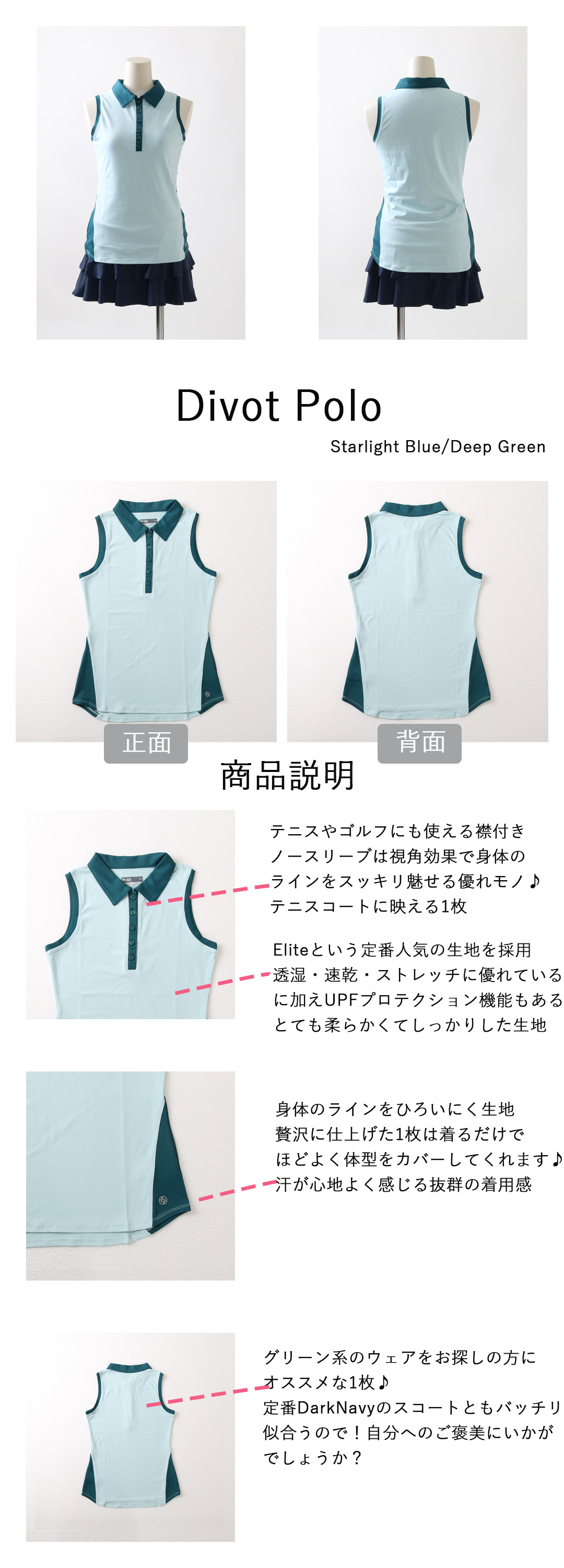 SALE50%OFF返品不可 Divot Poloディボットポロ|テニスウェア|ノースリーブ|DeepGreen