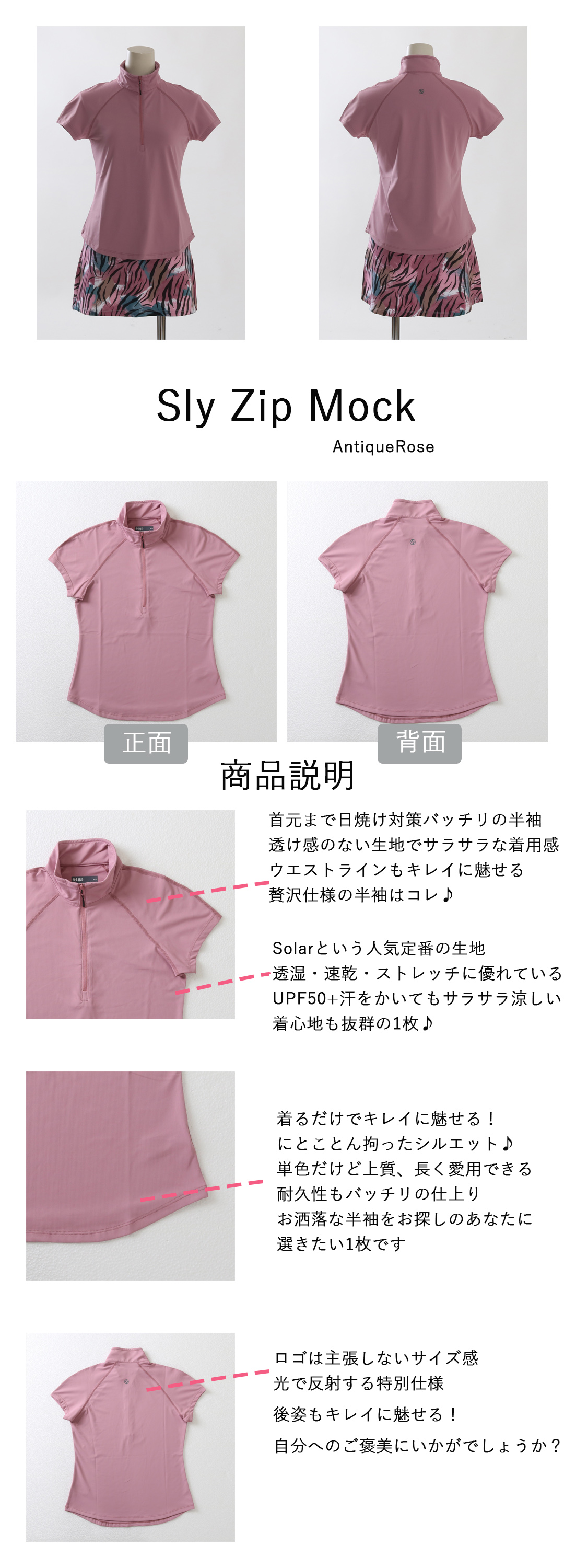 SlyZipMockスライジップモック|半袖|AntiqueRose
