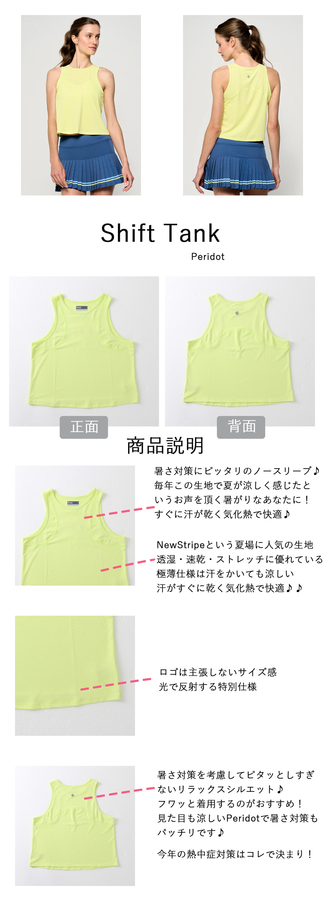 Shift Tankシフトタンク|テニスウェア|ノースリーブ|Peridot
