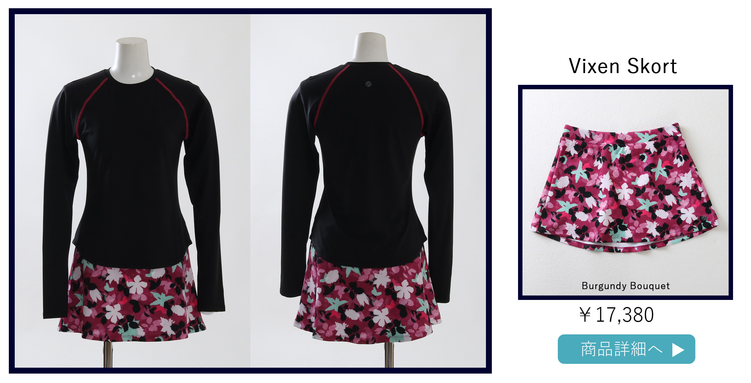 VixenSkortビクセンスコート|テニスウェア|スコートBurgundy Bouquet柄
