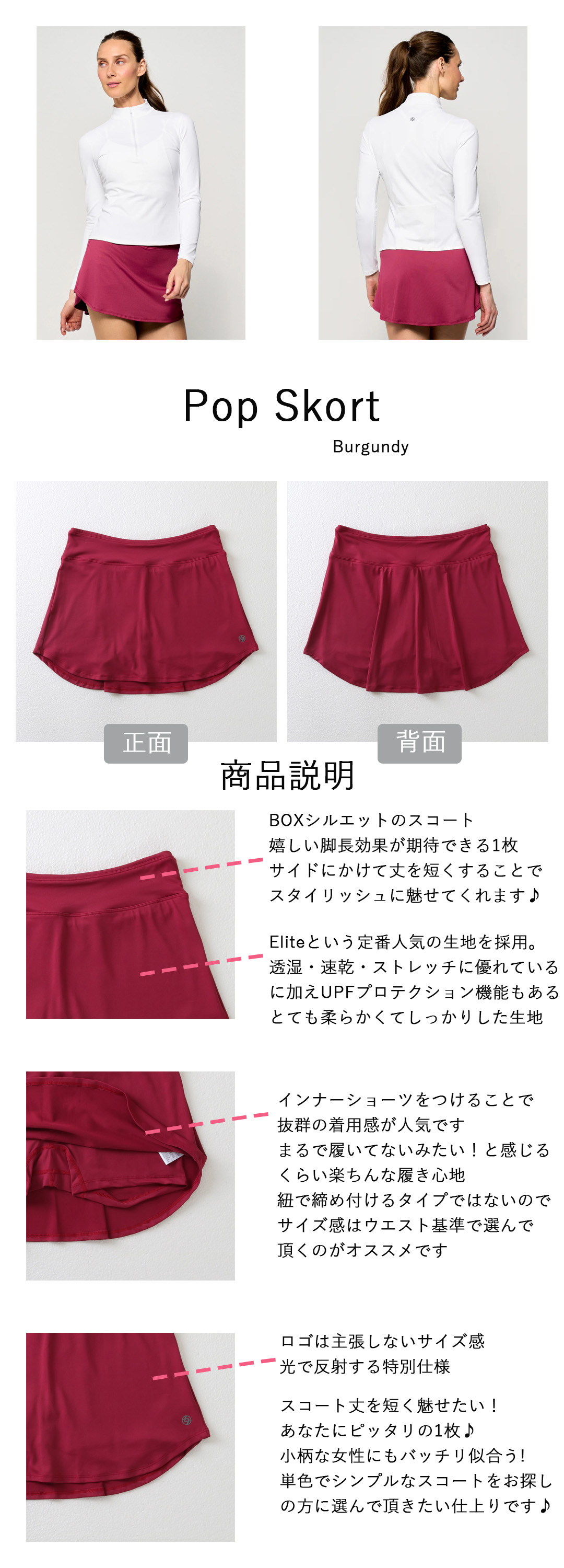 PopSkortポップスコート|テニスウェア|スコート|Burgundy