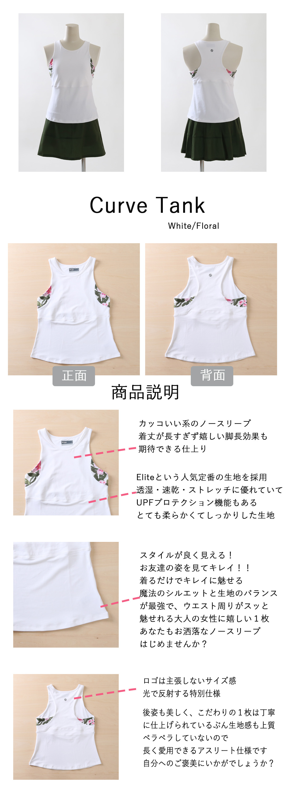 CurveTankカーブタンク|テニスウェア|ノースリーブ|White柄