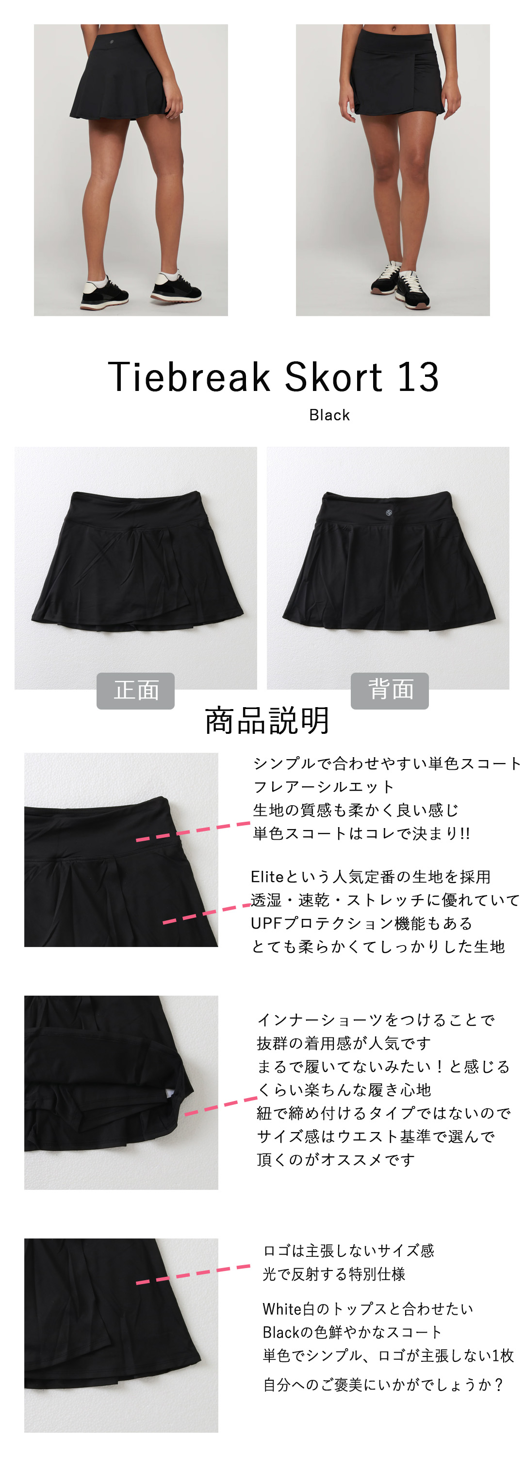 TiebreakSkortタイブレークスコート|テニスウェア|スコート|Black