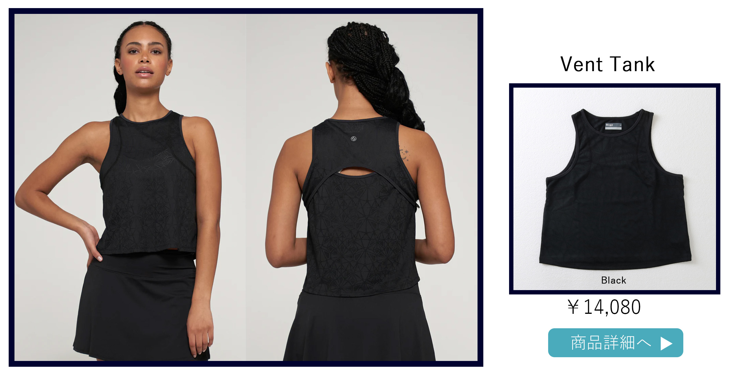 VenteTankベントタンク|テニスウェア|ノースリーブ|Black