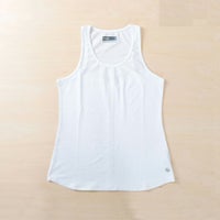 167cm 62キロ、Lサイズにしましたが少し大きくMサイズの方が良さそうでした。でも夏にアンダーウェアを着るときに大きめの方が涼しいかもと考え変えませんでした。(ちなみにパワータンクはMサイズがジャストサイズです) 白さが際立っていて綺麗です。 -